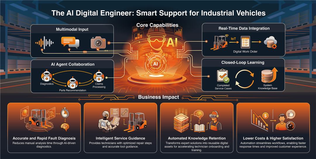 依托亚马逊云科技全托管生成式AI服务(包括Amazon Bedrock、Amazon SageMaker等核心技术),爱动超越不仅将释放高效算力势能,更将借助其内置的数据加密、访问控制、合规审计等核心能力,筑牢工业数据安全防线,加速“数字工程师”在工业场景的规模化落地。作为面向工业车辆后服务领域的核心解决方案,“数字工程师”可实现故障诊断、维修指导、工单闭环等核心流程的智能化升级,而亚马逊云科技全托管服务的合规适配特性,更能支撑爱动超越持续推动客户从技术试点阶段,平稳迈向生产级应用落地与可审计交付——确保在处理设备数据、维修案例、客户信息等敏感内容时,完全符合全球主流工业数据合规标准,让工业智能化服务真正实现标准化、可复制、可信任。