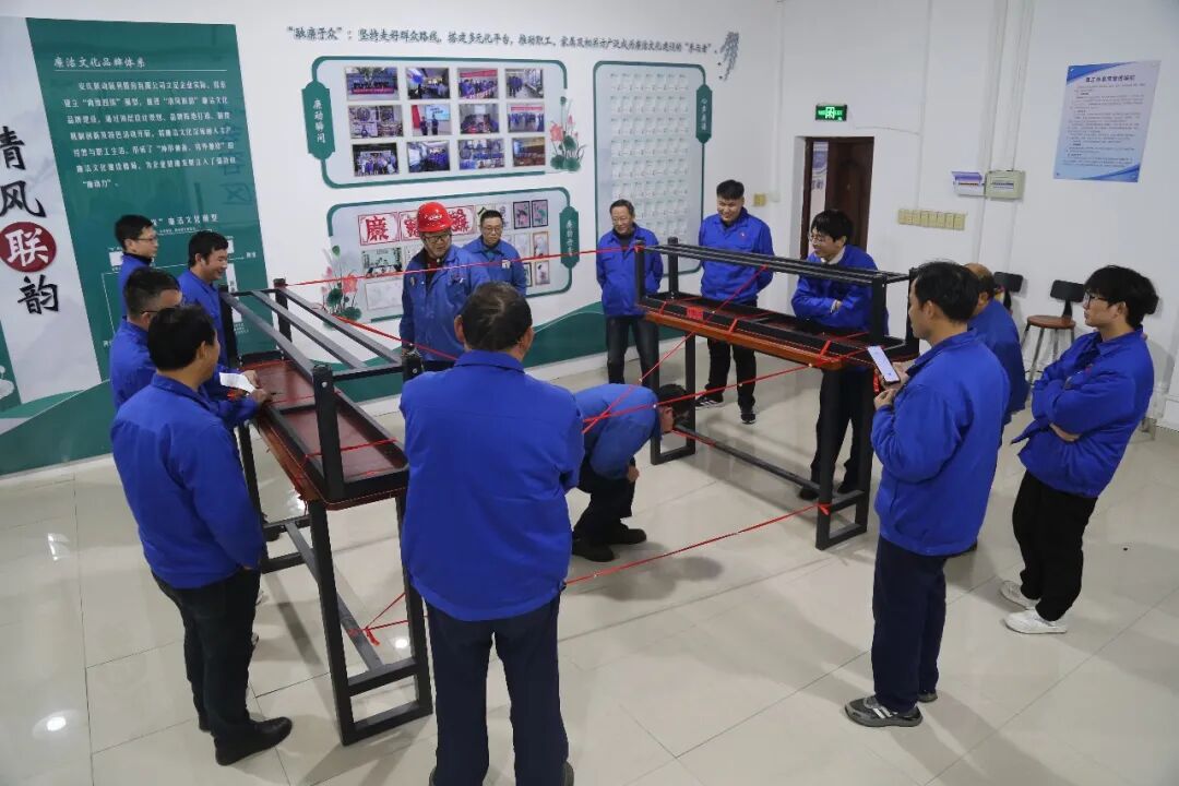 本次活动的亮点在于将廉洁文化融入运动项目。“不碰红线”项目紧张刺激,要求参与者在快速通过障碍区域时,身体任何部位不得触碰代表“纪律底线”的红色标识线,寓教于乐地提醒干部职工在工作中必须时刻知敬畏、存戒惧、守底线。“合力建塔”项目则要求队员们通过细线协同控制挂钩,将积木块逐一平稳垒高,任何一人发力不均都可能导致前功尽弃,生动诠释了“团结协作、根基稳固”的重要性。