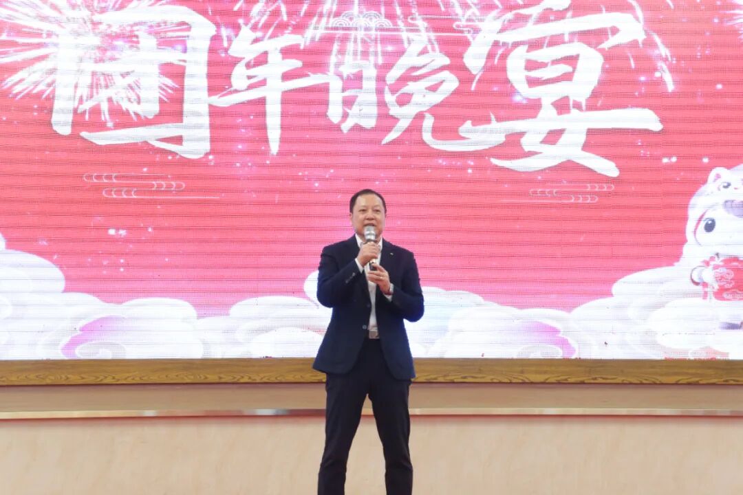 晚宴伊始,董事长侯泽宽先生发表了热情洋溢的致辞,他首先向全体员工致以最诚挚的感谢与最美好的新年祝福。感谢大家一年来在岗位上的坚守与奉献,感谢每一位家人的信任与陪伴。董事长的话语铿锵有力,赢得了现场员工们一阵阵热烈的掌声,也进一步凝聚了人心、鼓舞了士气,让每一位员工都对公司的未来充满信心。