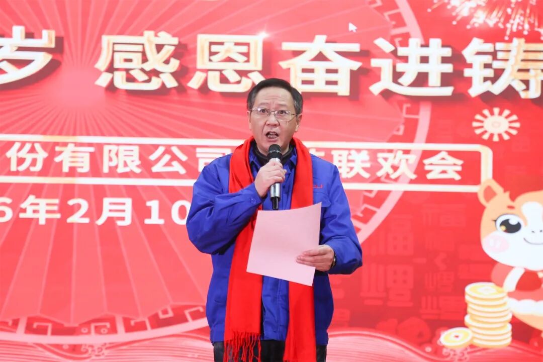 活动伊始,公司党委书记、董事长、总经理吴海曙发表热情洋溢的新春致辞。他代表公司党委和领导班子,向全体干部职工及家属致以诚挚感谢和美好祝福。致辞中回顾了极不平凡的2025年,面对复杂市场环境,全体联动人凝心聚力、迎难而上,公司主要经营指标再创历史新高。他强调,2026年是公司“十五五”规划的开局之年,公司将坚定信心、深化融合、创新驱动,全力以赴完成年度目标任务,让发展成果惠及每一位员工。