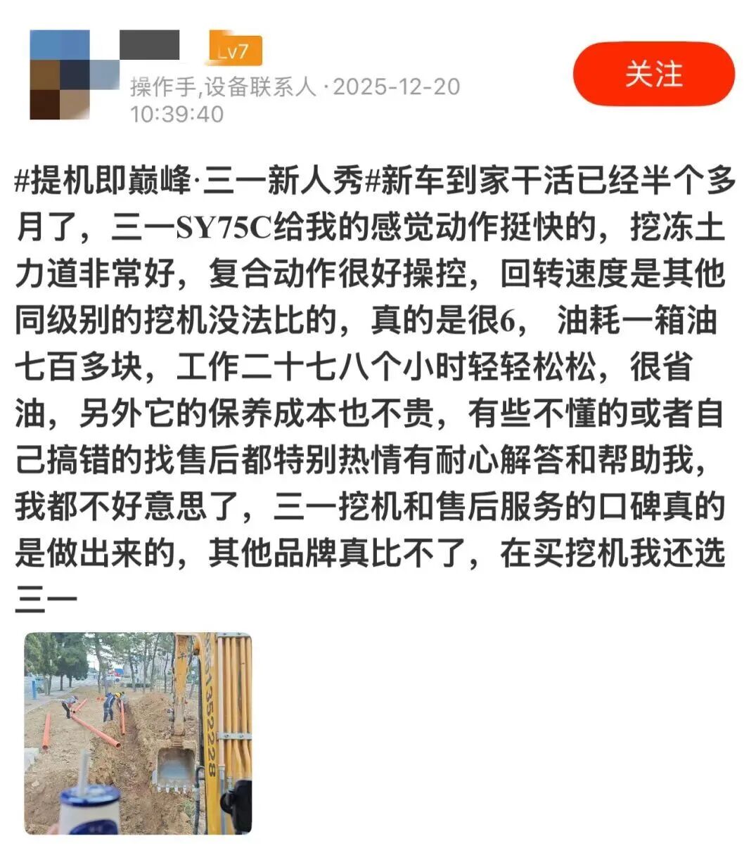 “5231”快速响应与覆盖全国的服务网络,是用户高效施工的坚实后盾。搭载“易维讯”智能管理系统,手机查机况、一键预约保养,更是让设备管理与服务触达更轻松、更透明。从交机到保养,从响应到智能互联,三一全程护航,让施工更安心。