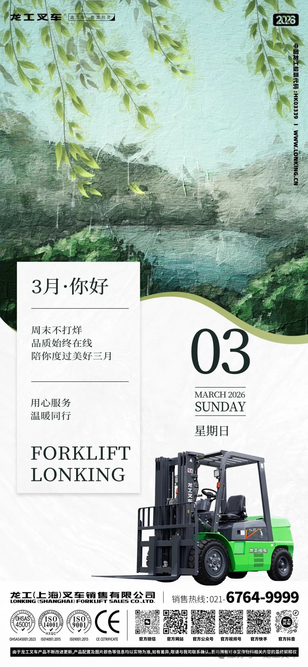 龙工(上海)叉车有限公司是中国龙工控股有限公司的全资子公司,自上市以来龙工叉车以其优良的品质和出众的性价比迅速占据了市场,营销网络和产品用户已遍布全国,现有各级代理商、服务商三百余家。