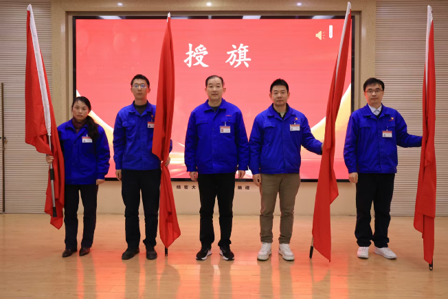 姜文东分别向营销、生产、技术、后勤保障四大方阵郑重授旗。战旗猎猎、迎风展,誓言铮铮、冲云霄。各单位代表身姿挺拔、目光坚毅,围绕劳动竞赛核心指标作表态发言,现场宣誓,确保任务分解到岗、责任压实到人!目标必达、使命必达!铿锵誓言响彻会场,激起阵阵雷鸣般的掌声,点燃了全员的热血与斗志。