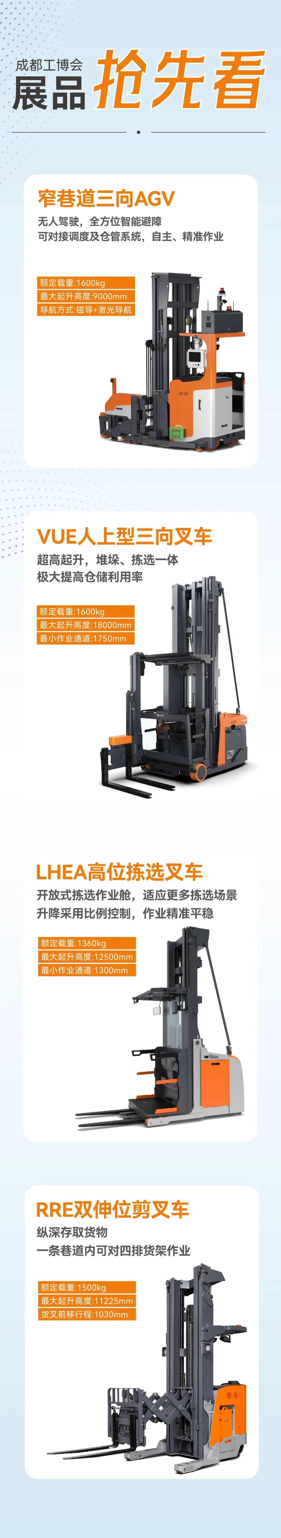 卓一智能叉车受邀参展,携四款窄巷道明星叉车亮相,覆盖无人化作业、高位密集存储+拣选一体化、高效拣选、纵深存取场景,将为西部地区客户量身打造绿色、智慧的物流解决方案。