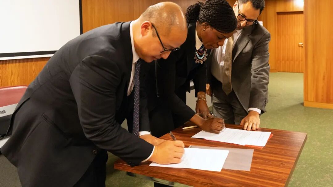 OCHA危机响应部部长埃登·沃索尔努与三一法国国区董事长黄天力代表双方签署,三一基金会由此成为首家与OCHA建立正式伙伴关系的中国企业基金会。