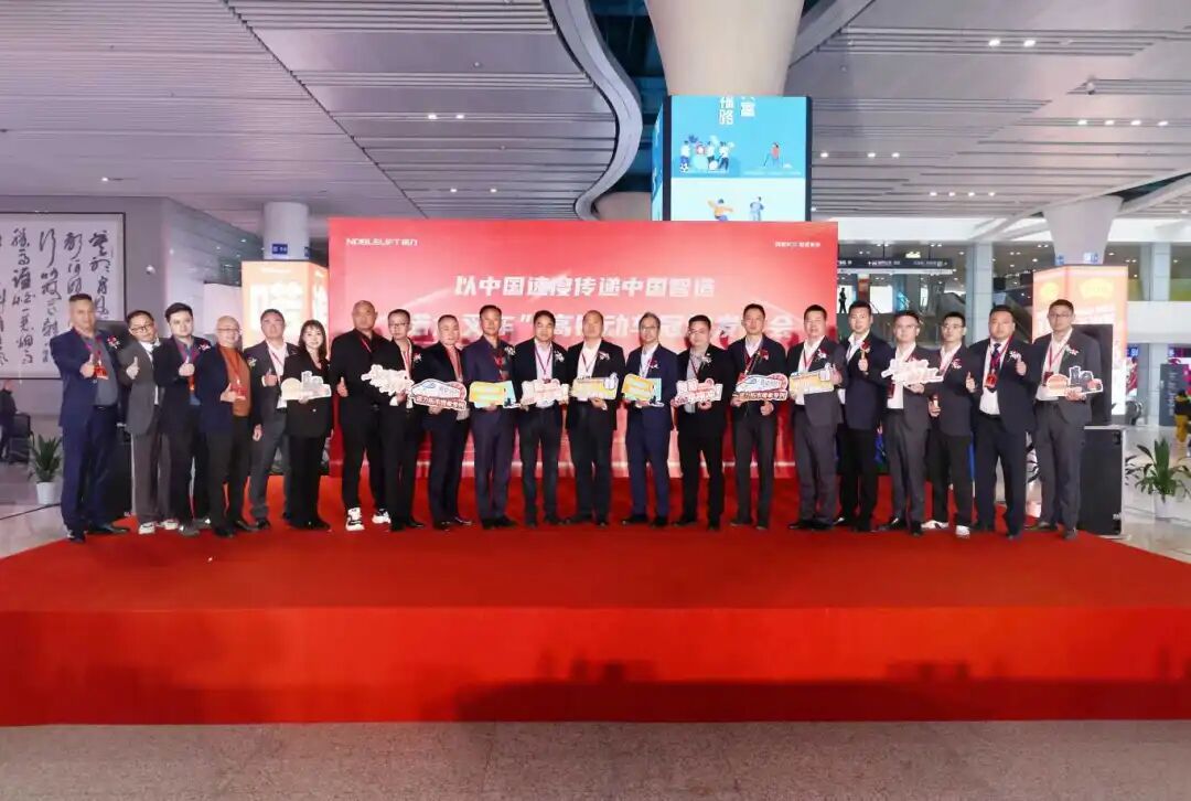 诺力集团副总裁、国内营销中心总经理蒋汉平,南京永达户外传媒有限公司副总裁吴丙礼,诺力优质大客户代表:零跑汽车高级副总裁宋忆宁、海南华铁大黄蜂业务负责人王新浩、龙合智能装备副总经理陈顺云与销售部长曹俊杭(部分),厦门、苏北、上海、浙江、南京等多地经销商合作伙伴,10余家主流媒体朋友,共计40余人,共同见证这一品牌里程碑时刻。