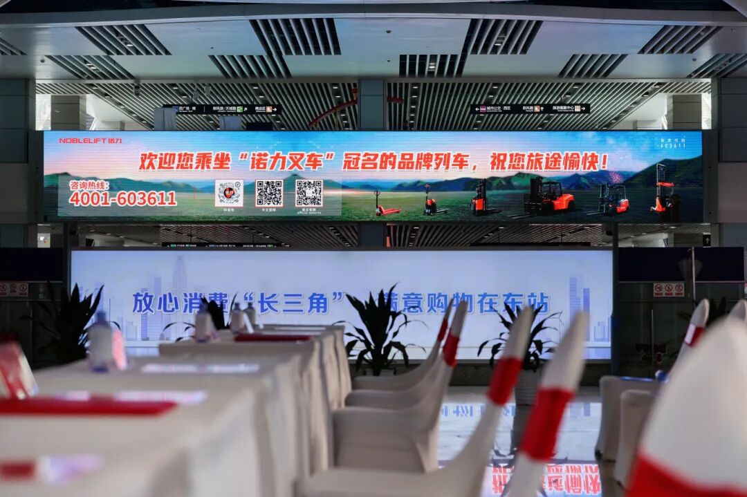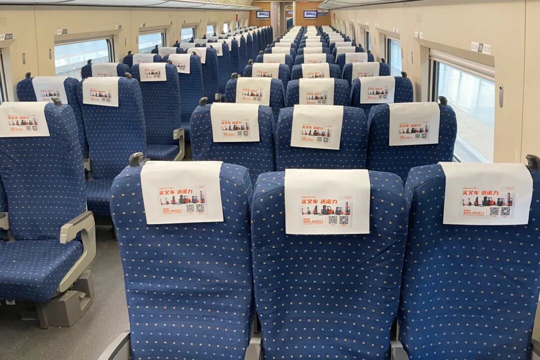 本次冠名列车打造全方位的“沉浸式品牌体验”。车厢内外采用专属诺力品牌的视觉涂装,座椅头枕印有诺力最新品牌口号,列车广播也融入诺力的问候元素。每一位搭乘该列车的旅客,在感受“中国速度”带来便捷的同时,也能近距离触摸到“诺力”的品牌温度与服务理念。