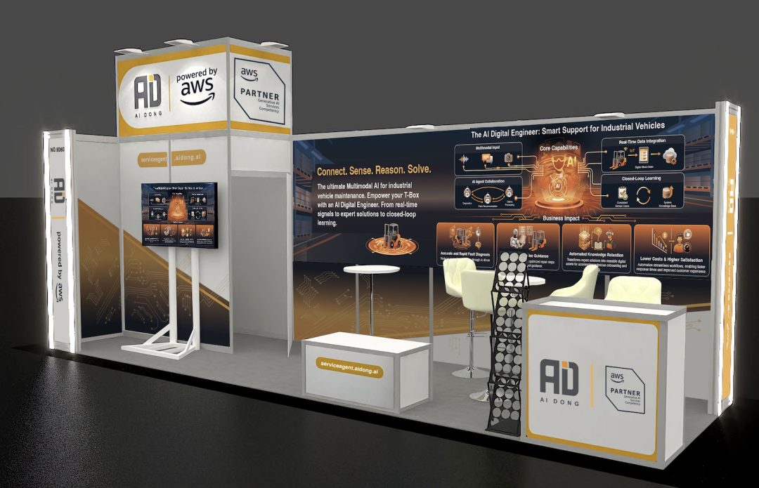 此次,爱动超越携手全球云计算巨头亚马逊云科技联合参展,携工业车辆后服务领域重磅新品——工业车辆后服务· AI数字工程师,即将在展会现场全球首发,以AI之力重构工业车辆后服务生态,解锁全球化服务新可能!