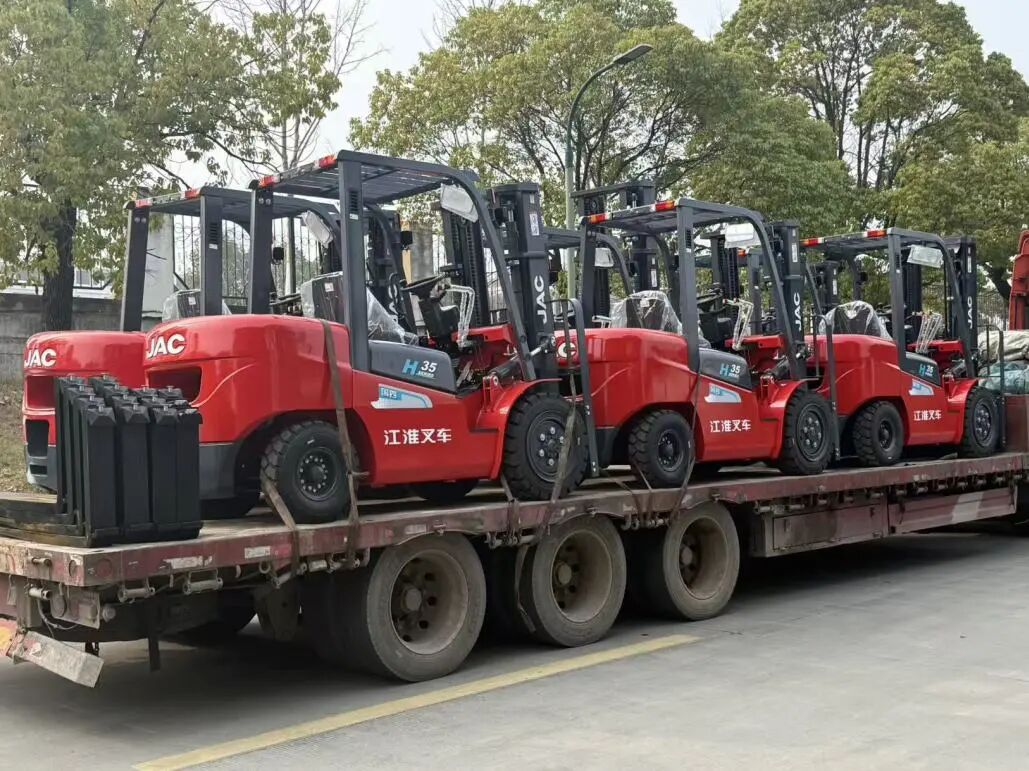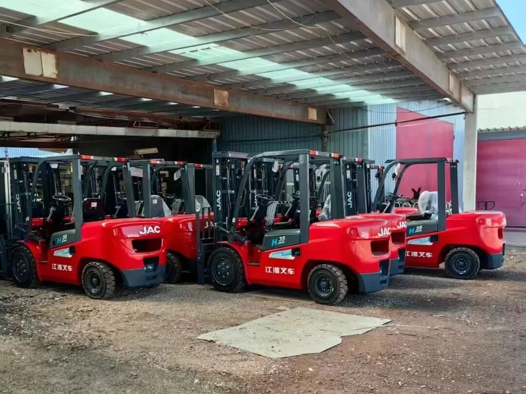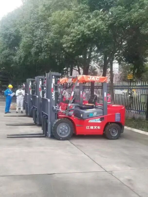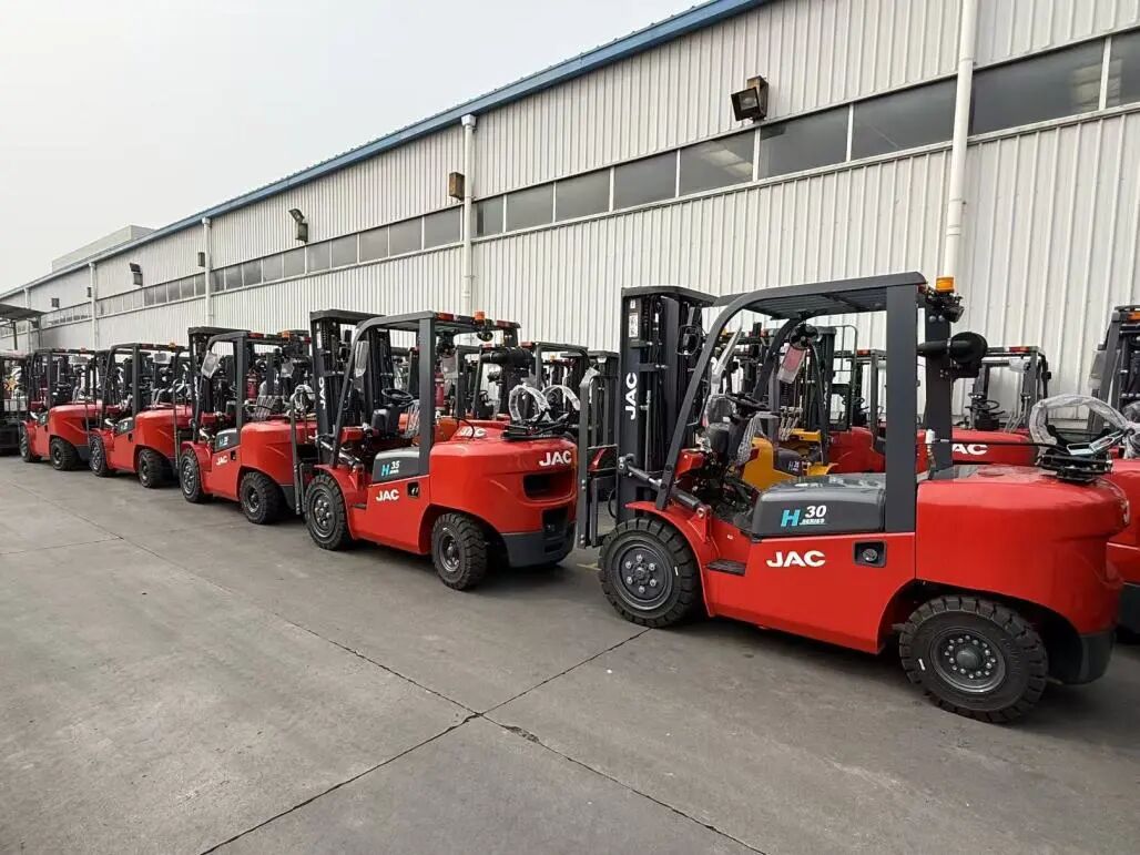崭新的江淮叉车整齐列队,气势磅礴,整装待发!每一台叉车都经严苛检验,静待出征号角,确保以最佳状态交付用户手中。