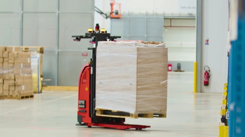 能做到这一点,是因为提前用扫描仪把仓库变成了数字模型,让车先在虚拟环境里练熟了。等它真进仓库的时候,路线该怎么走、遇到人会怎么办,心里已经有数。车上和天花板的AI摄像头能认出托盘,自己决定路线,自己送到地方,全程不用人管。