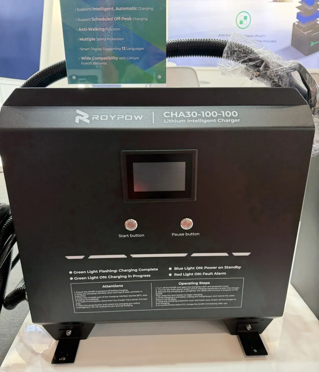 为实现与乐亿通锂电池的高效通信与充电匹配,乐亿通开发了智能叉车充电机,支持智能插枪即充、预约错峰充电降低用电成本以及多重安全保护功能。充电机输出电压范围为30–100V,可适配12S~26S锂电池,实现一机多用。产品通过 CEC、CE、EMC、UL 和 FCC 等认证,确保性能与安全可靠。