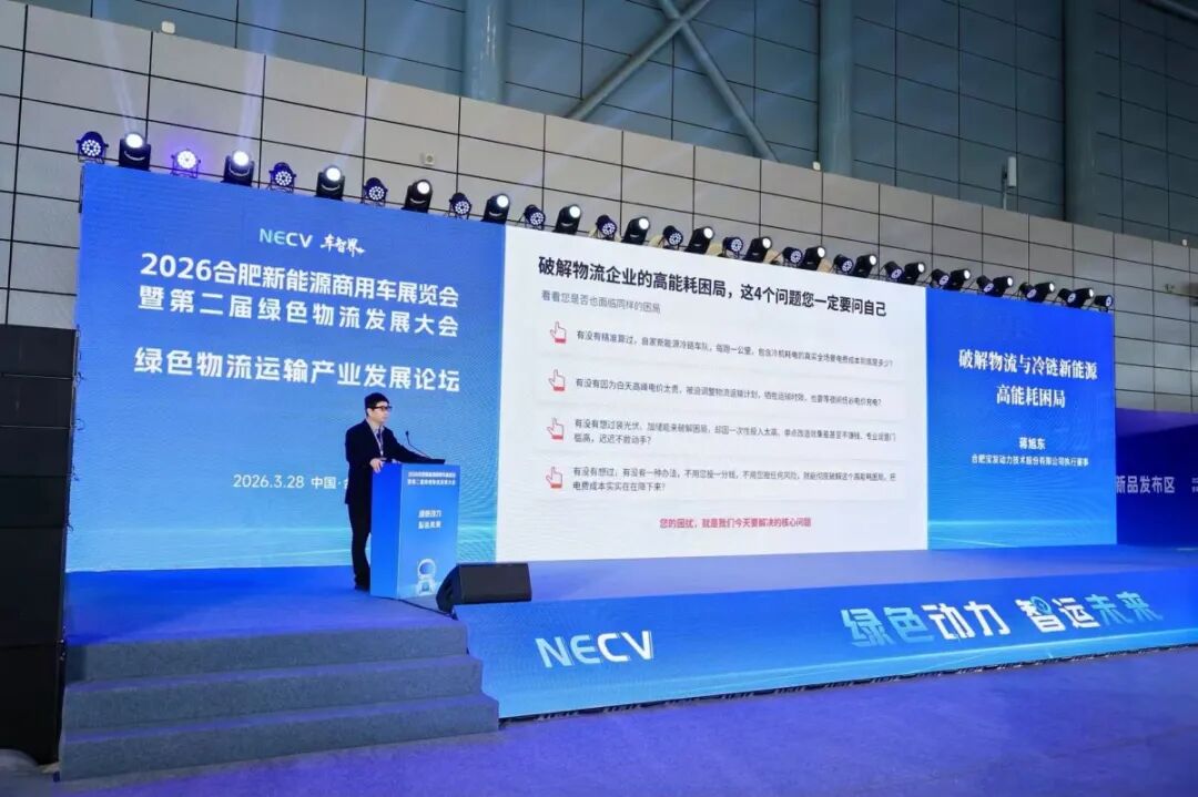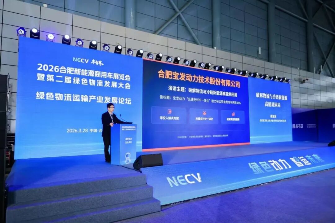 在2026年3月28日安徽合肥滨湖会展中心举行的“绿色物流运输产业发展论坛暨第二届绿色物流发展大会”上,合肥宝发动力技术股份有限公司(以下简称“宝发动力”)携其创新的“光储充VPP一体化”解决方案亮相。针对当前新能源物流与冷链行业普遍面临的“高能耗、高电费”痛点,宝发动力蒋旭东在主旨演讲中,直击企业运营成本的核心矛盾,提出了破解困局的便捷路径。