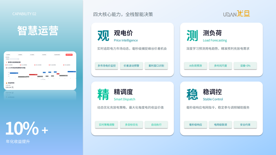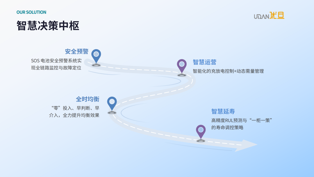 因此,优旦科技基于AI+云端大数据技术,开发了四大核心能力,逐一击破上述痛点。即主动安全预警能力、多元智慧运营能力、云端全时均衡能力与全生命周期智慧延寿管理能力。