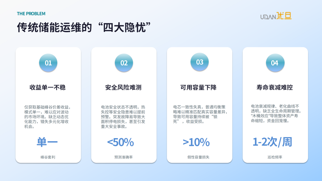 在座的各位都是储能电站的运营者、投资人,或者同行技术专家。大家心里都明白,传统储能运维的天空,飘散着四朵绕不开的乌云:
