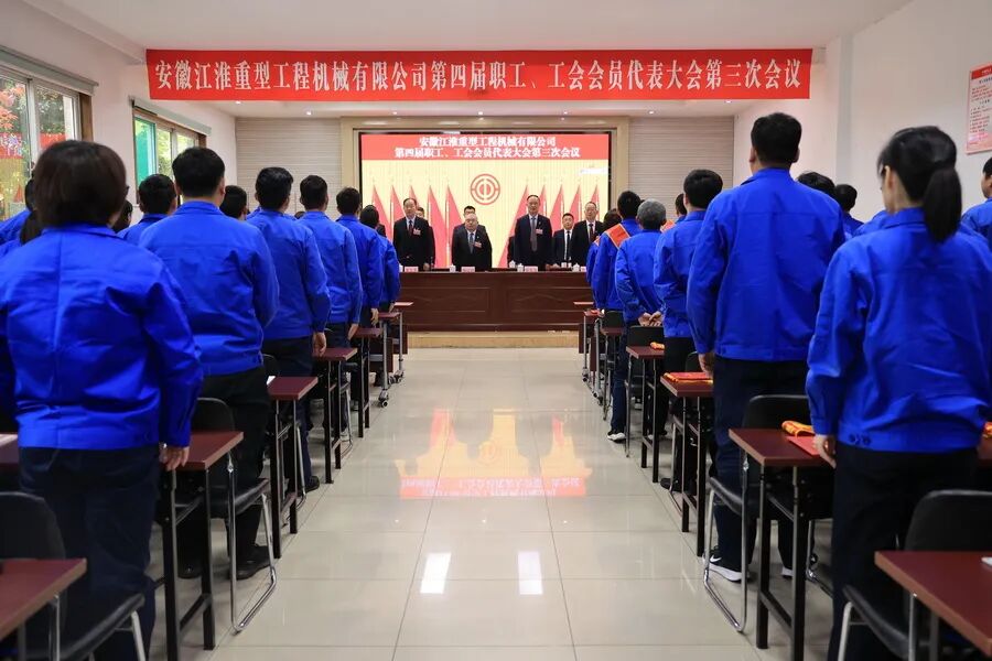 4月11日,安徽江淮重型工程机械有限公司第四届职工、工会会员代表大会第三次会议在公司多功能厅隆重召开。集团党委书记、董事长、总经理,股份公司党委书记、董事长杨安国,股份公司党委委员、副总经理、江淮重工党委书记、董事长陈先友,江淮重工专职外部董事鲁勇,集团公司办公室主任助理、董事会办公室主任助理苏帅应邀出席,江淮重工正式职工代表63人、列席代表19人参会。