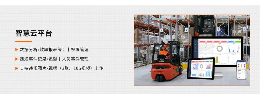 实时预警:检测到行人或障碍物,立即声光报警自动记录:所有预警事件、风险场景上传云端数据报表:按日/周/月生成违规统计、高风险时段/区域分析整改追踪:管理者可查看整改完成率,形成闭环