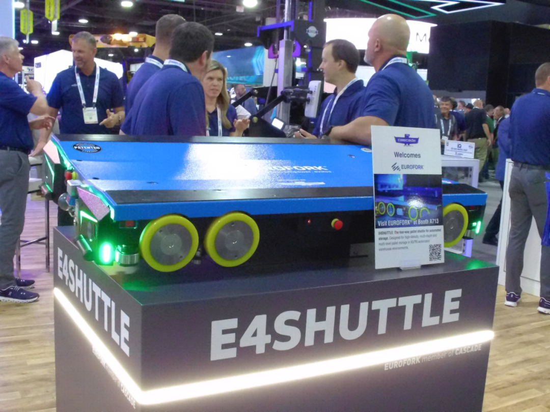 此次展会上,卡斯卡特的展品打破“属具仅为叉车配套件”的传统认知。从窄通道仓储前移式叉车专用属具,到高密度存储的 E4SHUTTLE 穿梭车系统,再到适配自动化场景的智能感知属具,每一款产品都对应着真实作业痛点。