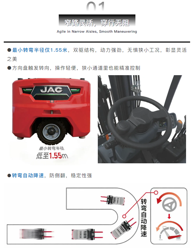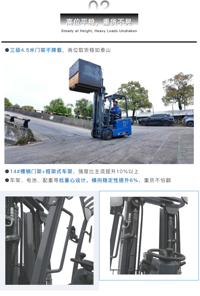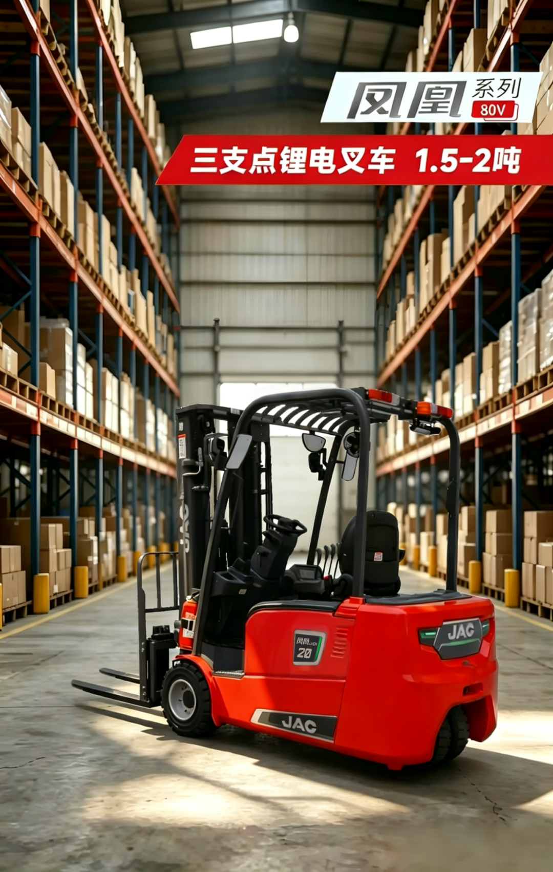 江淮叉车最新发布的凤凰系列1.5-2吨三支点锂电叉车,正是针对这些搬运痛点,提供了一套可靠、高效的解决方案。