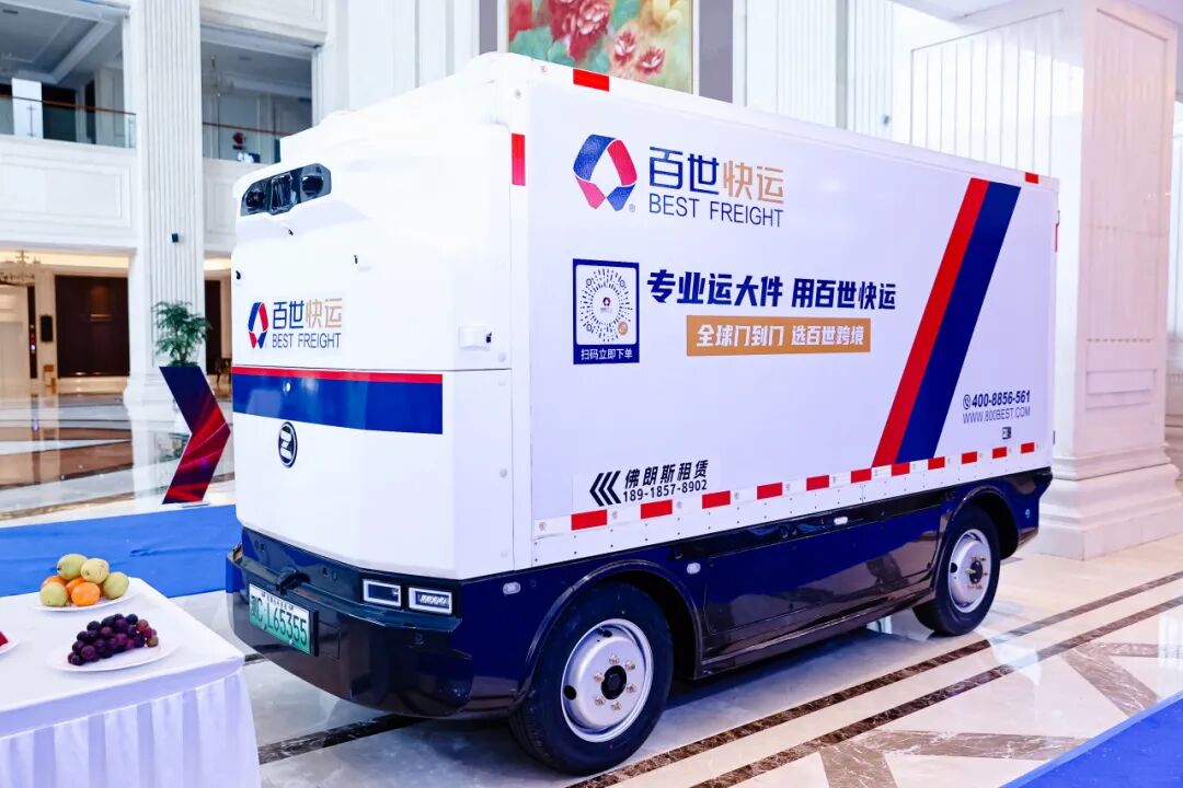 在百世快运山东分公司网络大会现场,佛朗斯展台前人头攒动。九识Z8无人配送车凭借L4级自动驾驶能力、8m³货厢容积、1500kg额定载重、最高270km续航等硬核参数,吸引了众多物流企业负责人驻足咨询。