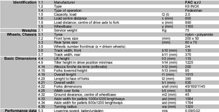 意大利F.A.C.Special Power Pallet Trucks/K9 T 20 K9 T 20