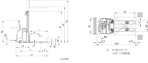 | 13 | 直角堆垛通道宽度,托盘800×1200(1200沿货叉边) | Ast mm | 2300 | 2300 | 2300 | |