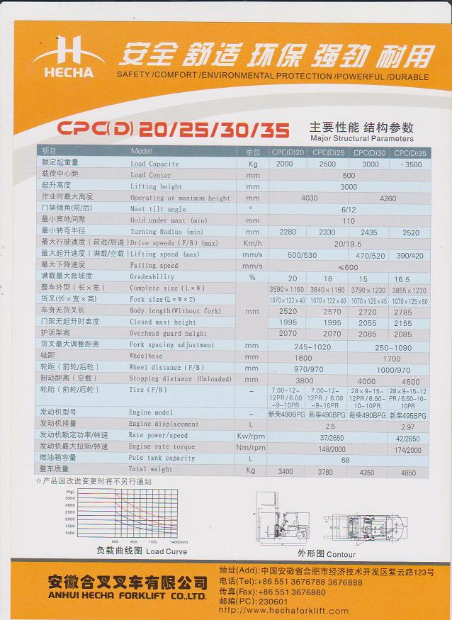 安徽合叉CPCD30内燃叉车,公司专业为食品、建材、化工、石材行业研发的叉车,产品性能优越,质量稳定,先进的生产工艺,完善的售后服务系统,已经可以完全替代国外产品。性能可靠的全柴A490发动机,中南传动变速箱,前进轮胎,加强型门架,锻打货叉。