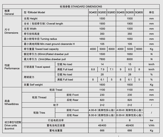 · 大功率电机配备自主研制的牵引车专用变速箱、驱动桥,结构紧凑,传动平稳,噪声小