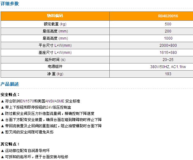 产品参数