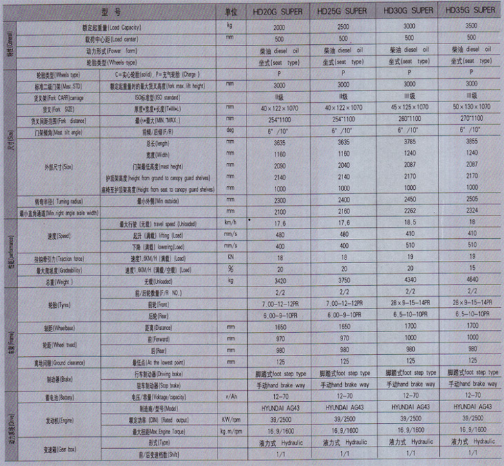 现代柴油叉车系列 HD20/25/30/35G SUPER