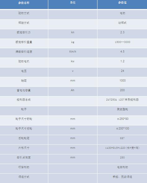 该车噪声小、无污染、安全、转弯半径小,通过性能好。该车专供工厂、车站、码头、库房、地下通道的场所与无动力挂车配套作业的短途运输设备。