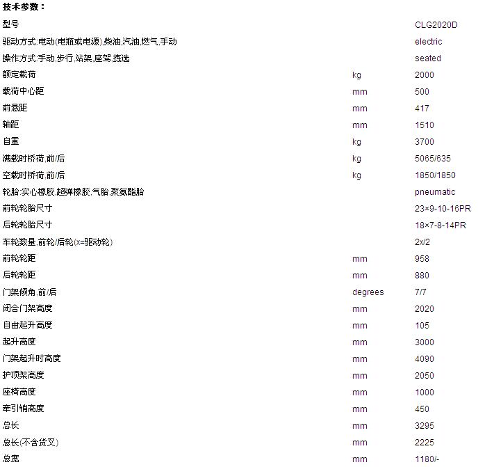 CLG2020D-CLG系列电动平衡重式叉车