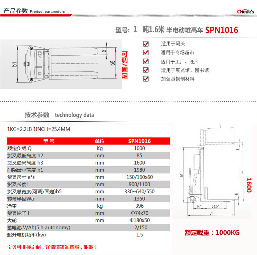 卓仕经济款全电动堆高车--CLF1025 CLF1025