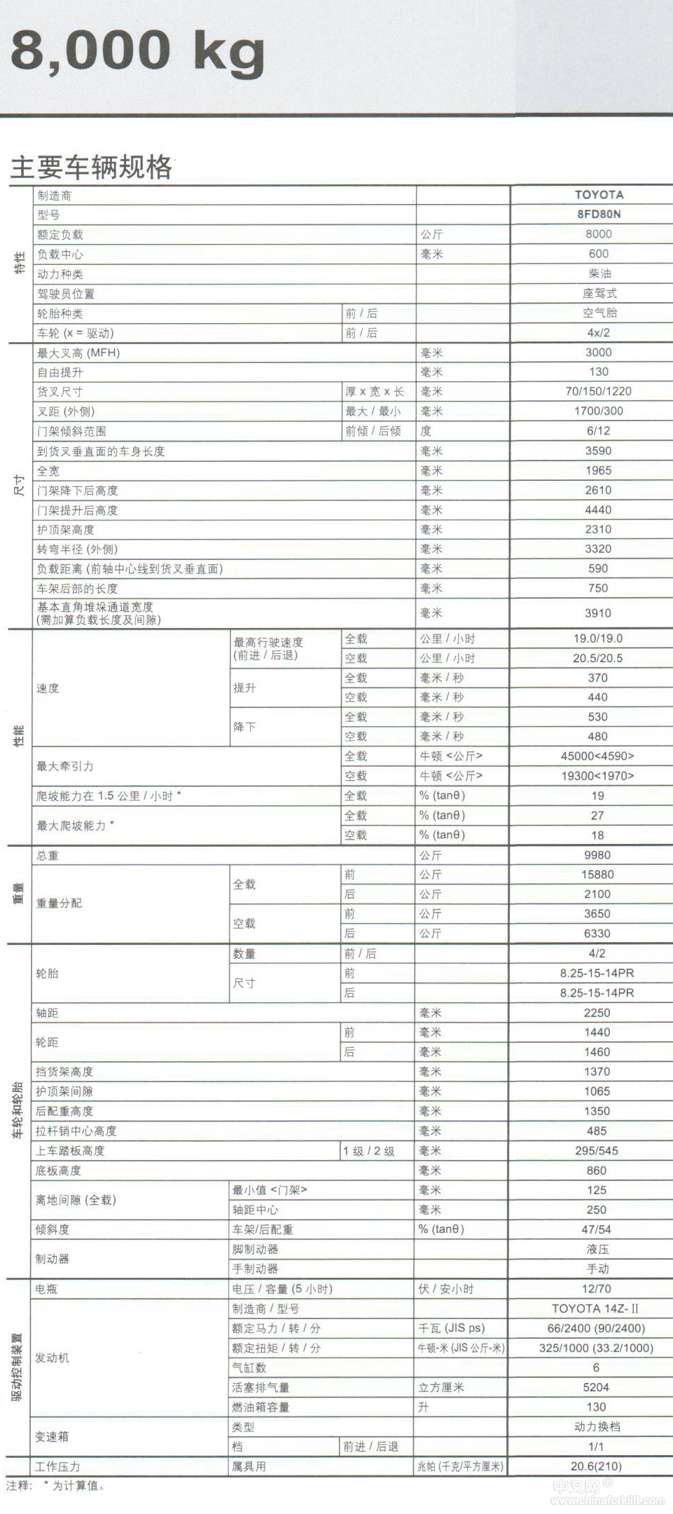 丰田8系列8吨内燃平衡重叉车 8FD80