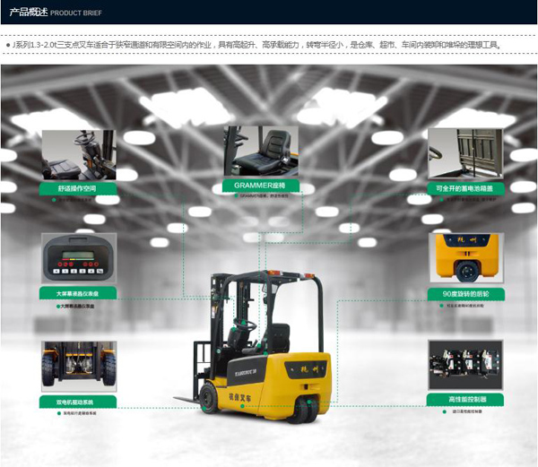 杭叉J系列三支点1.3-2吨电动平衡重式叉车