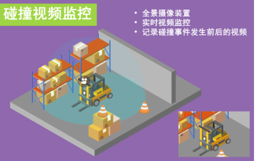 碰撞发生后,管理模块自动发出报警,并可根据设置自动锁定叉车