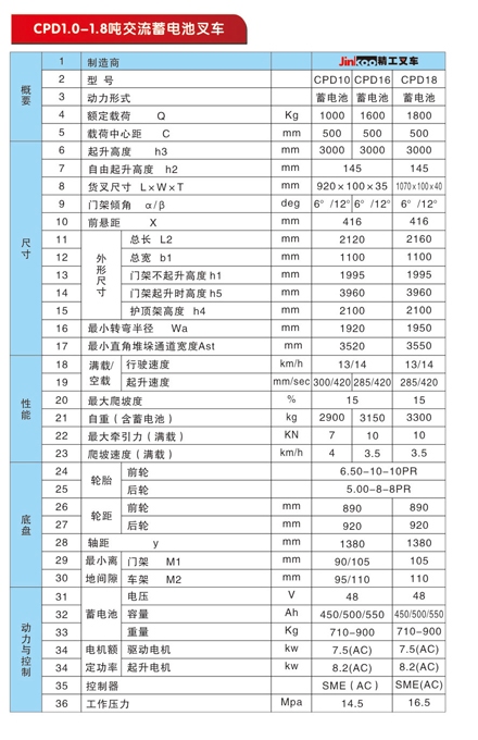 川渝精工2.0-2.5吨交流蓄电池叉车 CPD20-25