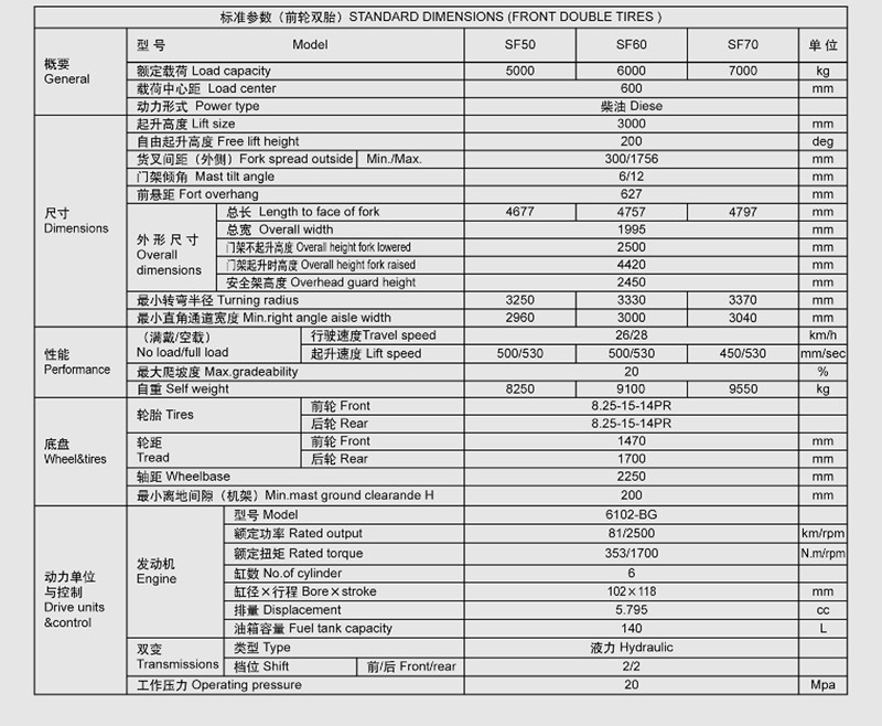 · 宽视野门架上午设计为驾驶者提供了宽阔的视野;