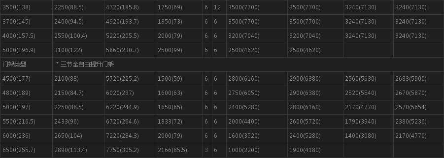 3) 两节全自由提升3.0/3.3/3.5/4.0/4.5/5.0米门架