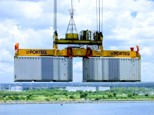sfPORTEQ 吊具质优价廉,功能强大,停机时间短,能够满足客户对高性能优质吊具的严苛要求,在业界赢得了良好口碑,还为客户提供2 x 20 检测系统,可及时检测吊具下方的两个20 英尺集装箱,以控制吊具运行,降低事故风险,重视提升安全性能。