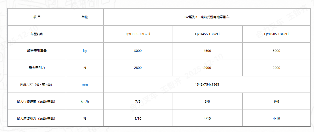G2系列3-5吨站式锂电池牵引车是我公司开发的系列环保型牵引车辆,具有低噪音、低污染、牵引力大、操作简便、造型新颖、转向轻便灵活、操作舒适安全、性能稳定、维护保养方便等优点。采用短操纵手柄、电子助力转向、转弯自动减速、可调式后背靠椅、大安全踏板设计等,更符合人机工程学和安全性要求的设计元素。