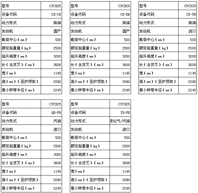 大连B系列2.5吨平衡重式内燃叉车 CPCD25