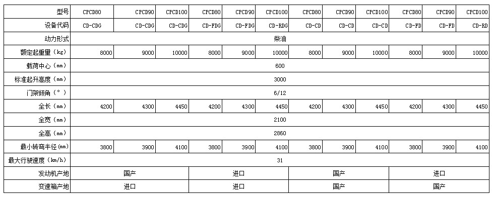 大连D系列8-10吨平衡重式内燃叉车 CPCD80 90 100