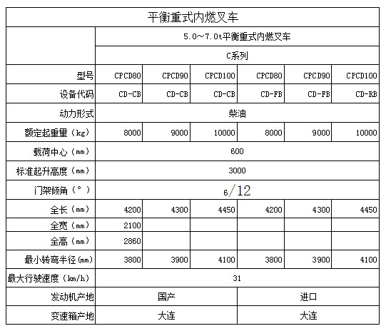 大连D系列8-10吨平衡重式内燃叉车 CPCD80 90 100
