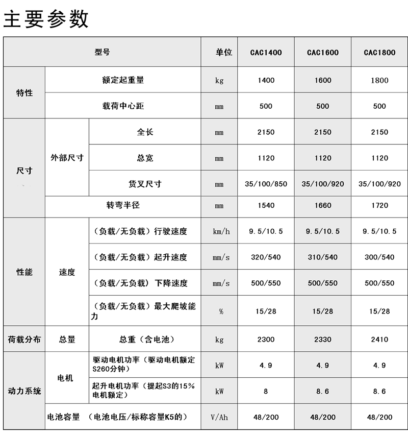 比亚迪侧驾前移式叉车 CAC1400-CAC1800