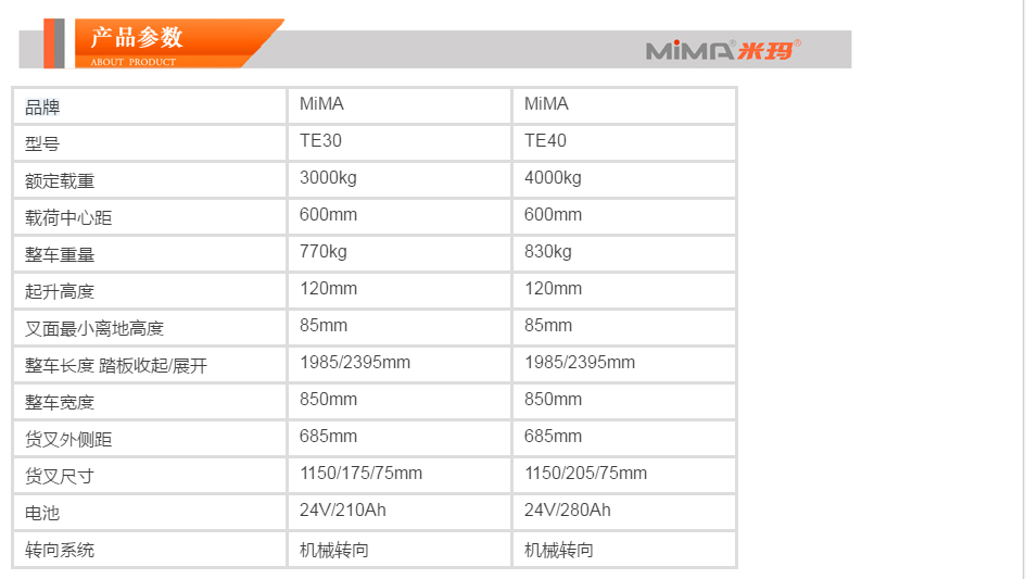 MiMA(米玛)电动托盘搬运车TE(P)系列