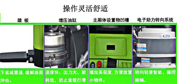 5、整车结构紧凑,转弯半径小,配合电子助力转向,更能在狭窄的空间内作业,操作十分灵活。