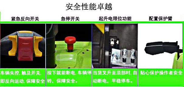 3、控 制手柄上安装紧急反向开关,当车辆后退失控时,操作者的肚皮主动或被动触及反向开关,车辆将立即停驶并迅速反向运动一小段距离,防止操作者的身体受到挤压伤害。