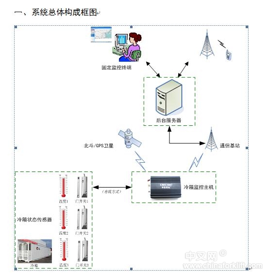 冷链运输监控系统主要由冷箱状态传感器(温度传感器、门开关状态传感器)、冷箱监控主机、后台监控系统三大部分组成。 该监控系统能帮助管理者实现对冷箱箱体内部温度、冷箱箱门安全状态、冷箱运输车辆位置等状态的远程实时监控,确保运输全程货物的安全、可控。该监控系统同时能够提供真实、有效的统计报表数据,可为管理者的分析、决策提供有效的数据支持。