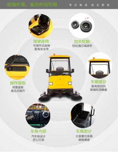 MN-E800W是一款中型电动驾驶式扫地机,为吸尘、扫地、喷水相结合的自动清洁一体机。加大车轮,通过性高,适用于公园、环卫、物业保洁、广场、高校的室外清扫。