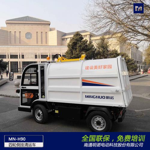 明诺电动四轮侧挂桶垃圾清运车 垃圾箱倾倒垃圾无残留性能特点